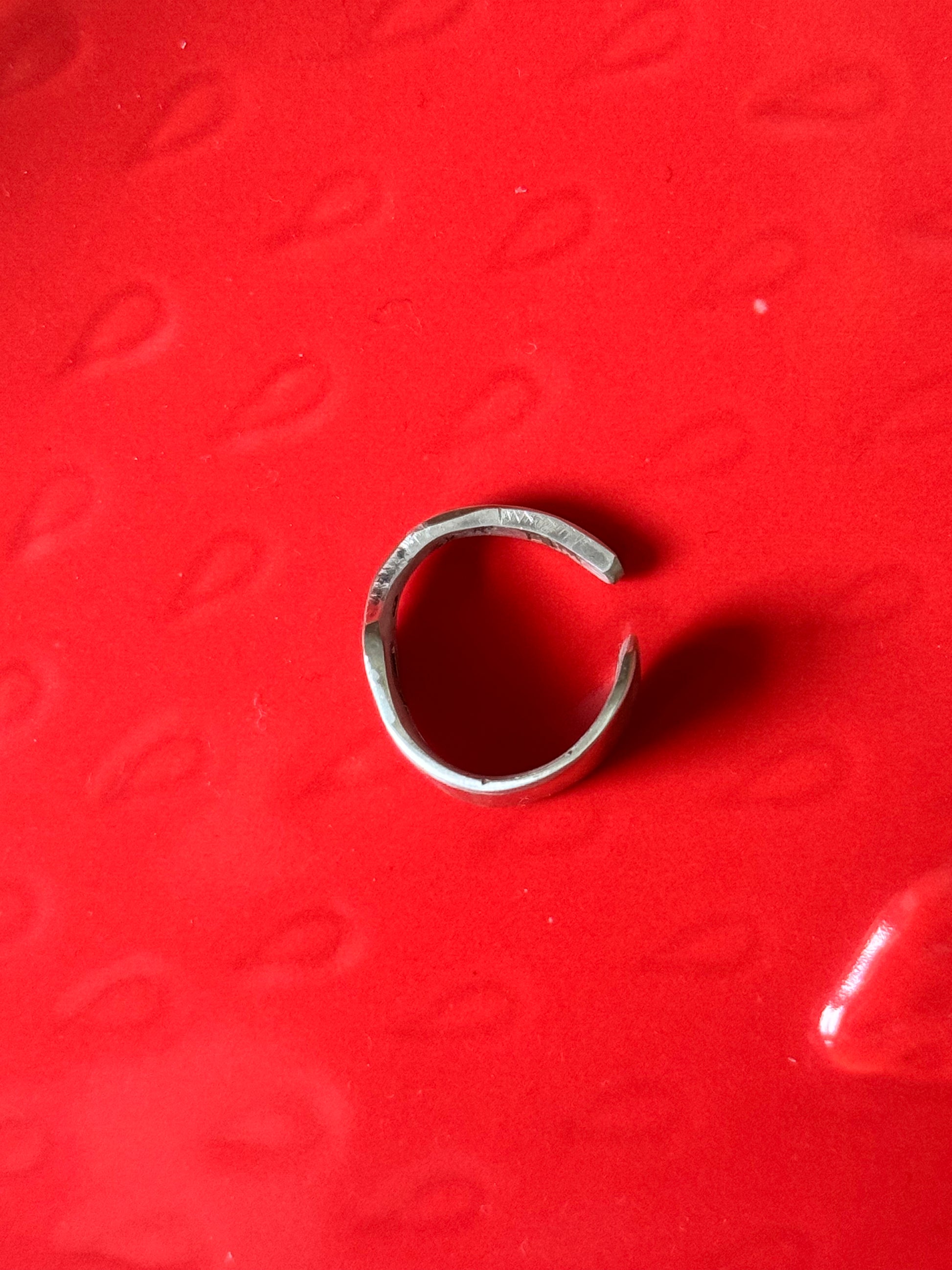 These little rings are made by me from antiquw spoons, sanded down and shaped by hand! They’re not perfectly round, but that’s kind of the point - each one has its own bit of character ❤️ Originally sterling silver, but the nickel shines through a bit more because of the sanding, which just adds to the vibe.